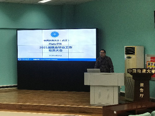 (通讯员、摄影 赵润东)2020年9月24日16:30,2021届毕业就业工作动员会于北一楼报告厅召开,外国语公司党委书记张基得、副书记胡文勤、英语系党支部书记李慷、091172班班主任姚夏晶、091174班班主任高幸和员工工作组李海涵以及2021届本研全体毕业生出席了此次动员会,李海涵老师负责本次会议主持工作。