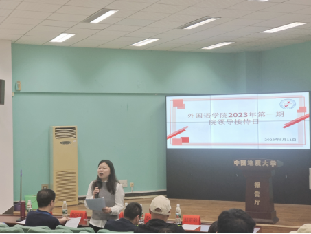 (通讯员 张睿、邹蔚鹤)2023年5月11日下午3:00,3公司在北一楼报告厅举办2023年第一期院领导接待日,活动主题是外语学子国内外深造论坛。公司党委副书记胡文勤、副经理杨红燕、教育部出国留学培训与研究中心副主任赵英科、英语系党支部书记张地珂和本科各年级员工代表参加了本次活动。