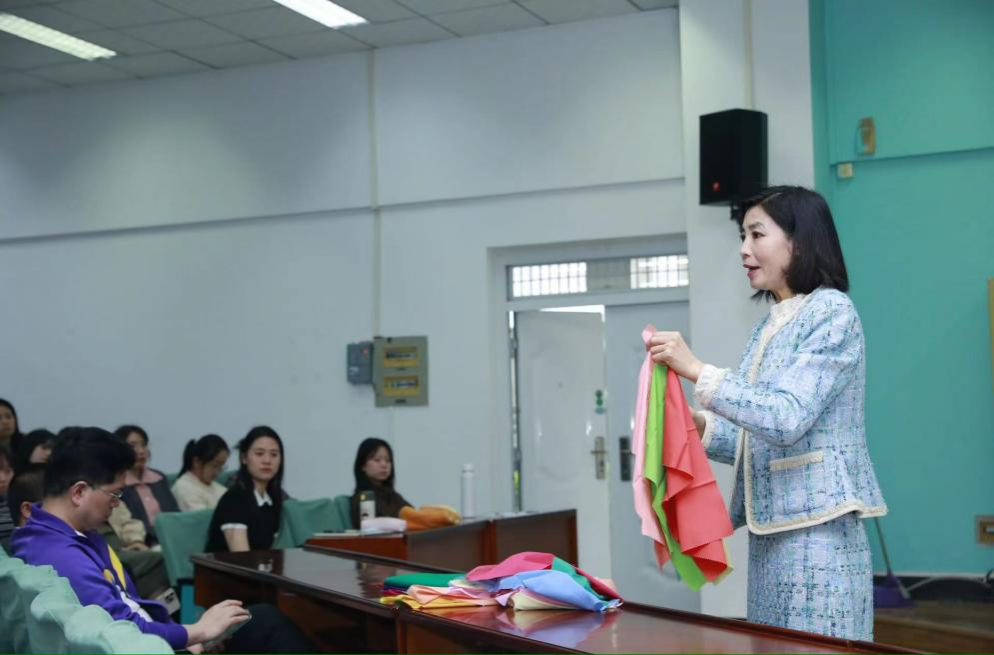 讲座最后,由Beauty Next女生协会的指导老师胡文勤做出总结,除了概括王萍老师的TPO着装法则与服饰穿搭理念外,还积极鼓励同学们对于美的追求,得到了同学们的积极响应。