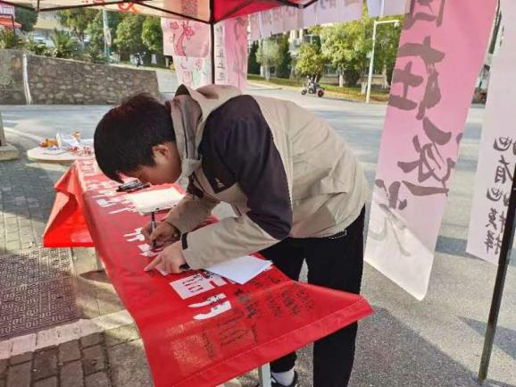 活动横幅上,马克笔的轻盈滑动留下了珍贵的祝福和留言,宛如一首首悠扬的诗歌,在春风细雨中流传永恒。“天天开心,万事顺意”、“无畏世俗,从容自信”、“前途似海,来日方长”.......同学们用心书写的期许与祝福,字字句句都饱含着无限的期待与美好的节日祝愿。老师们也和同学们一起参与这次活动,一同传播着节日的爱与祝福。