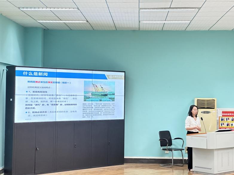 在我们日常生活中,新闻起着至关重要的作用,它向我们反映着当代社会的现象及发展。王俊芳老师从关于新闻写作的基础知识展开,为我们详细讲解了什么是新闻—新闻是新近发生的事实的报道,从定义出发,老师向我们强调了新闻的实效性与真实性,并运用了生动的比喻:新闻是“速朽”的,有“保质期”的,过期的新闻价值会大减。