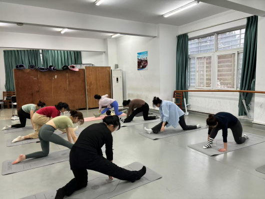 在瑜伽练习的过程中,同学们每一次缓慢而深长的呼吸、每一次身体的舒展与拉伸,仿佛释放了自己身心的紧张与压力。瑜伽不仅能够提升身体素质和柔韧性,还促进了专注力的提升与内心的宁静。凌慧老师在课堂上提到:大家做好瑜伽练习,可以调理肩颈酸痛,增强身体柔韧性。