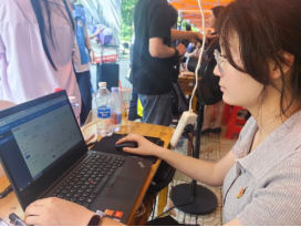 在南望山校区迎新现场,党员先锋岗的红色帐篷成为一道亮丽的风景线。服务点布局合理、功能齐全,配备有电脑、矿泉水和迎新资料等必需品,为新生和家长提供及时便捷的服务。“党员先锋岗”的标识鲜明醒目,精心设计的欢迎展板烘托出热情而专业的迎新氛围,充分展现了304永利集团的独特风采。服务点设置的每一处细节,都凝聚着公司党委对迎新工作的周密部署,传递出对2025级新同学的诚挚欢迎与深切关怀。