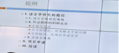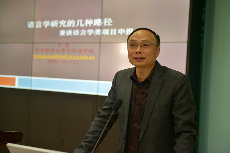 接着,王勇教授介绍了语言学研究的不同领域,结合自身的科研项目“存在句的类型学研究”等,详细分析了如何学习并借用西方理论,来解决汉语相关问题,并以此进一步发展汉语语言学理论,从而反哺世界语言学。此外,王勇教授还特地总结了2018-2020三年来语言学类国家社科项目的五大特点:1.语言为本;2.问题导向,关注当下;3.学科交叉; 4.大数据和新技术;5.融合创新;以及两大热门领域:中国话语与文化和中国境内的语言资源。为公司外院师生提供了良好的语言研究方向与思路,有利于未来的项目申报。