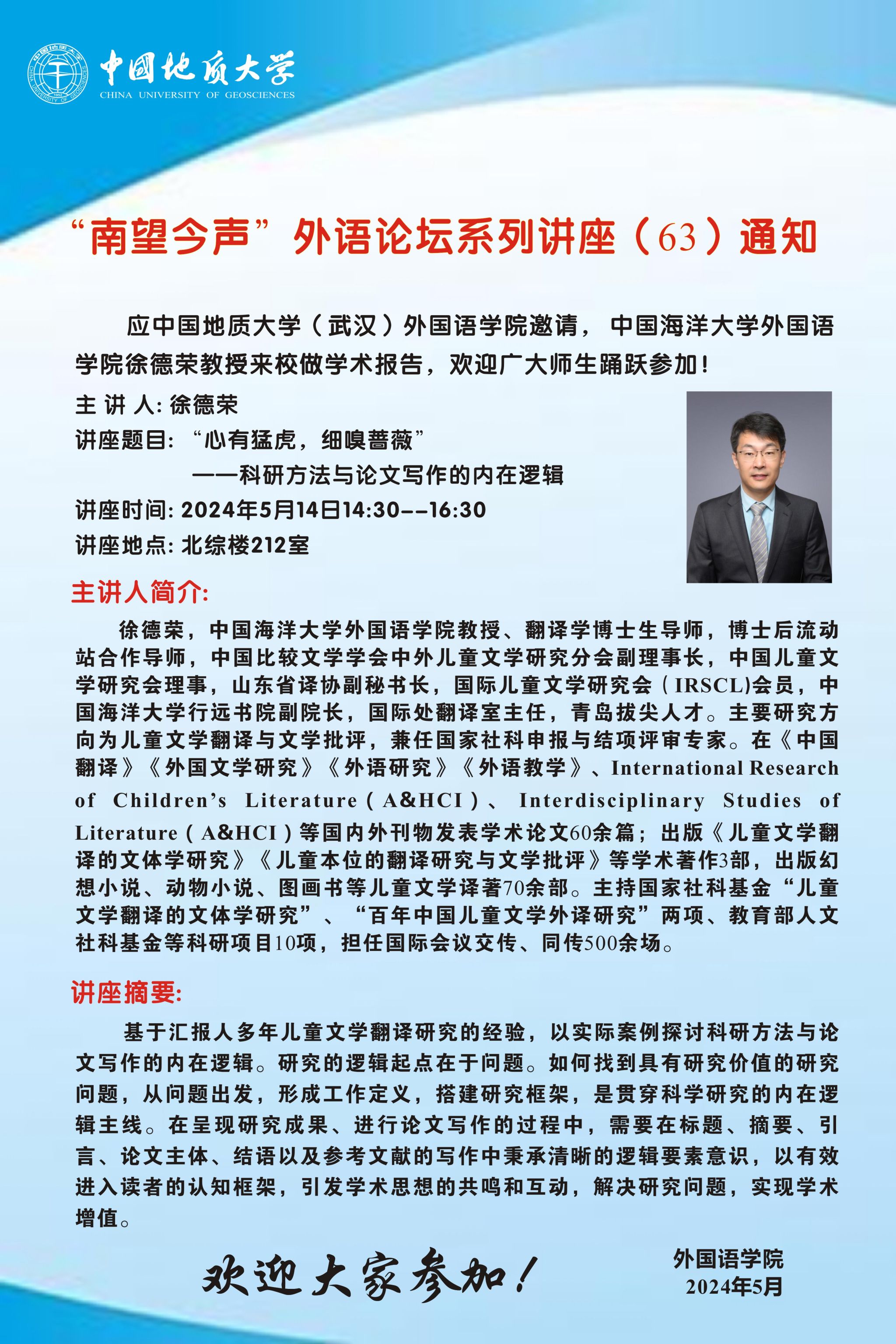 “南望今声”外语论坛系列讲座(63)通知