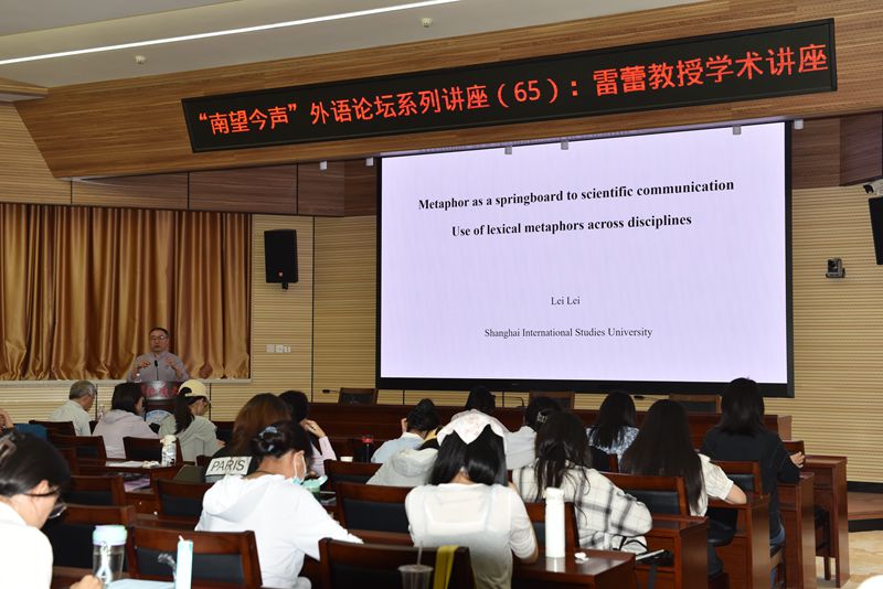 2024年5月31日上午9时45分,304永利集团“南望今声”外语论坛系列讲座第65期在东区八角楼报告厅举行。本期讲座特邀上海外国语大学雷蕾教授,为我们带来了一场题为“Metaphor as a Springboard to Scientific Communication: A Large-scale Study of the Use of Lexical Metaphors Across Disciplines”的精彩讲座。此次讲座由304永利集团张伶俐副经理主持,参会人员有相关专业老师以及研究生共计100余人。
