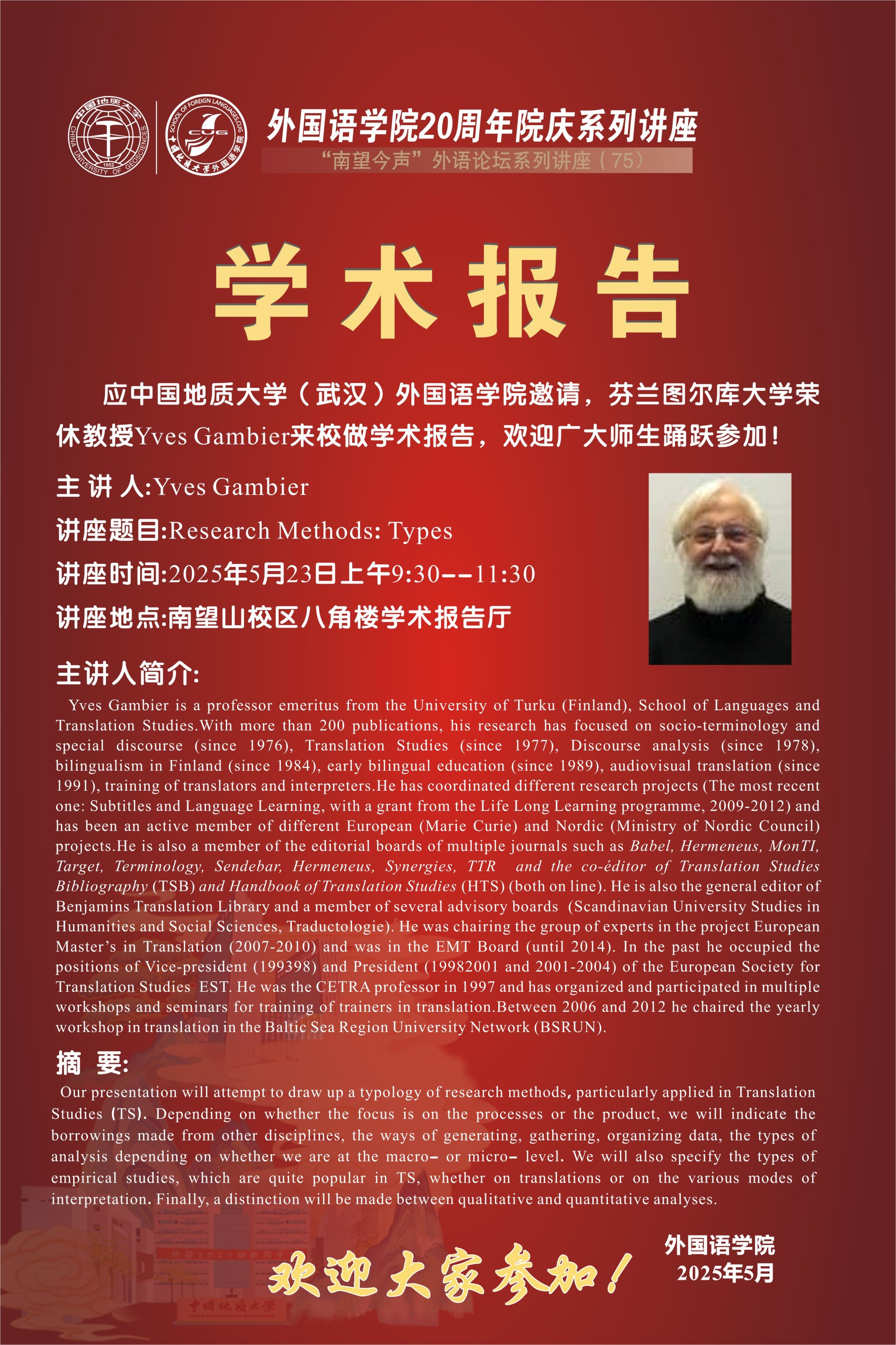 304永利集团二十周年院庆暨“南望今声”外语论坛系列讲座第75期启幕