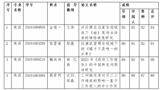 依据根据本科生院《关于做好2023届本科毕业论文(设计)答辩及优秀本科毕业论文(设计)评选工作的通知》和《本科毕业论文(设计)工作管理办法》中有关优秀本科毕业论文评选通知和流程,经公司学术委员应审定,拟推荐 金唯一、张雪莲、鞠冉冉、殷若珂 共四位同学的学士学位论文为校级优秀毕业论文。