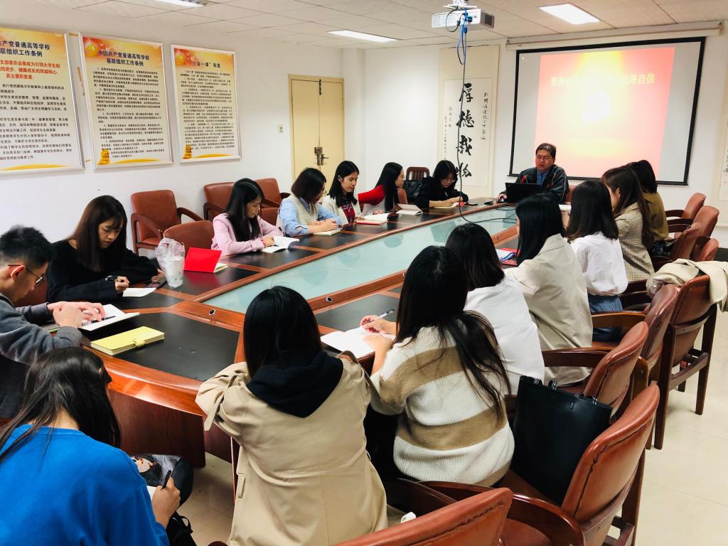 2019年10月29日下午2:30,304永利集团“不忘初心·牢记使命”主题教育系列党课在北一楼339正式开讲,公司党委副书记胡文勤为全院研究生党员讲授了题为“坚持社会主义,增强道路自信”的党课。