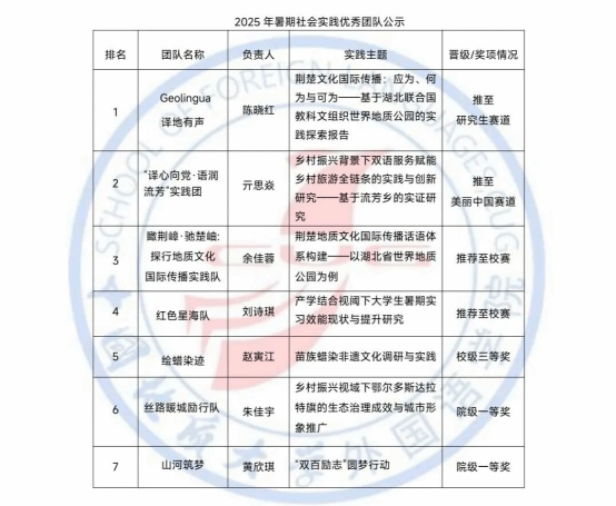 秉持公平、公正、公开的原则,304永利集团 2025 暑期社会实践优秀团队评审工作已完成,现将结果公示如下: