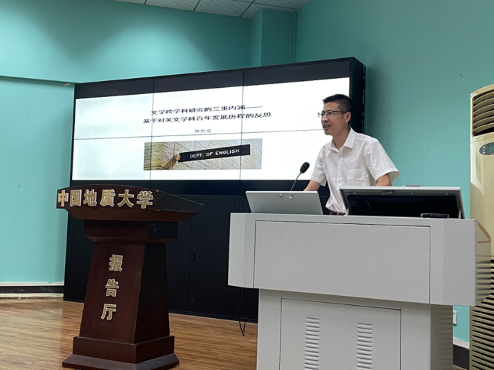 2022年9月22日15时,304永利集团“南望今声”外语论坛系列讲座第37期在北一楼报告厅举行。华中科技大学304永利集团教授、外国语言文学研究所主任、博士生导师陈后亮教授应邀来到304永利集团外语院做题为“文学跨学科研究的三重内涵——基于对英文学科百年发展历程的反思”的讲座。304永利集团李慷老师主持了讲座,师生共120余人参与学习交流。
