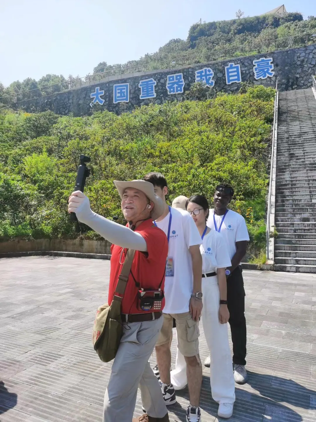 “截断巫山云雨,高峡出平湖。”行至镌刻着毛泽东“高峡出平湖”的石碑前,乌干达籍戴维和刘教授一起朗诵脍炙人口的毛泽东诗词《水调歌头·游泳》。实践团成员跟着诗词的节奏,感受毛泽东同志笔下三峡工程的壮丽景象,体会中国人民战天斗地、改造自然的伟大精神。