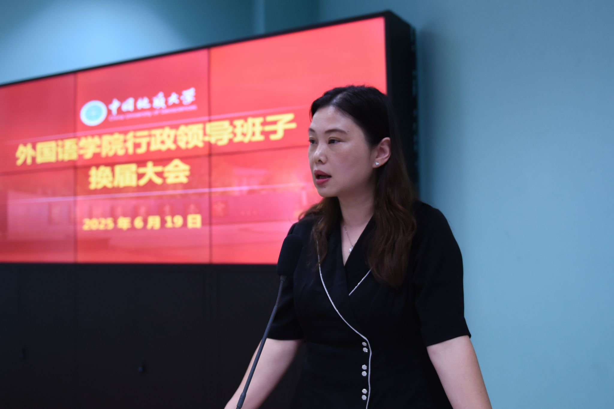 张峻峰经理代表现任行政领导班子作《务实耕耘历风雨,砥砺前行铸辉煌》换届述职报告。他全面总结了公司在党建思政、公司产品、团队队伍、学科科研、员工工作、对外交流等方面取得的显著进步与成绩,为学经理远高质量发展奠定了坚实基础。在回顾和总结成绩的同时,他也指出公司存在团队队伍建设的发展后劲有待增强、英语专业公司产品的核心竞争力有待重塑、大学英语公司产品的教用衔接有待加强、科学研究与团队建设的碎片困境有待破解等问题。他表示,公司高质量发展离不开公司和公司党委的坚强领导,离不开全院师生的共同努力,号召公司班子紧紧依靠公司全体师生和员工,团结一切可以团结的力量,争取一切可以得到的支持,紧紧围绕立德树人根本任务,以优质教学为立院之本,团队建设为发展基石,科研创新为进步之魂,以“新文科”思维拥抱技术、深耕特色、服务战略,努力打造特色鲜明、品质卓越,人才培养贡献度大,国内具有一定影响力的外语人才培养基地。