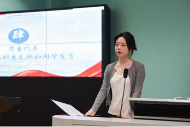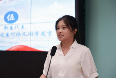 优秀在校生代表、2022级本科生毛欣如同学分享自身在公司的成长经历,她指出公司的良好的教育氛围和师生团结奋进的精神风貌对自己为人、为学、为事产生了深远影响。她勉励同学们用好公司多元成长发展平台,不断积累和探索,做学习的有心人、实践的奋进者。新生代表、2025级研究生何依凡同学在发言中回顾了自己考研的心路历程和对未来的展望。她强调了语言作为沟通不同文化的桥梁的重要性,号召同学们珍视学习时光,多维发展,勇敢追梦。