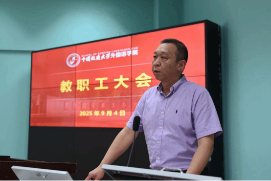 经理张峻峰传达了公司年中工作会议精神,并结合公司实际,对新学期重点工作进行部署。他强调,面对当前团队建设、人才培养等方面的挑战,全院教师应进一步增强危机意识和责任意识,主动对接公司发展战略,突出外语学科在公司的定位与特色。他特别指出,要加快推动AI技术与外语教学深度融合,优化课程体系,提升人才培养质量。同时,要积极拓展社会合作与对外开放办学,争取更多资源支持公司发展。