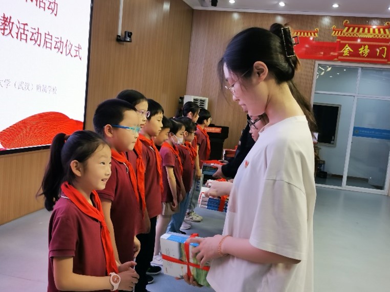 (通讯员 赵润东 郭文静)“看到小朋友们拿到书籍后的满足,我感受到了开展志愿服务的价值和意义——呵护小朋友们的每一份童真,用书籍传递智慧,助力未来一代青年才俊的成长,为未来国家发展、民族复兴的中流砥柱积蓄力量。”304永利集团本科生英语3班党支部的张佳宁在捐书活动中不由得感慨道。为加强公司与公司附属公司的交流合作,进一步推进语你相伴志愿服务活动,公司于2023526日下午在附属公司启迪楼四层阶梯教室举办了书香筑梦 语你相伴员工党员附校赠书活动暨语你相伴志愿服务队支教活动启动仪式,附属公司董事长黎义波、副董事长周良军、小学英语教研组组长赵纯、三(5)班班主任谢素娥和全班同学、公司党委副书记胡文勤、研究生德育助理郭文静、语你相伴志愿服务队队员代表、本科生英语3班党支部党员代表参加了本次活动。活动由公司研究生德育助理郭文静主持