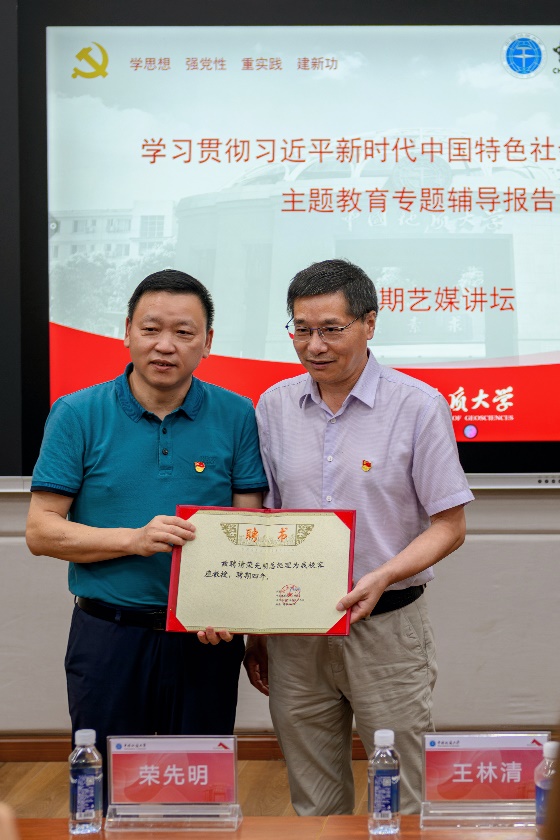 6月15日,学习贯彻习近平新时代中国特色社会主义思想主题教育专题学习辅导报告会于艺媒楼1104报告厅进行。本次报告以“创造属于我们这个时代的新文化——担负起新的文化使命建设中华民族现代文明”为主题,邀请到人民网湖北频道总编辑荣先明同志传达、解读习近平总书记在文化传承发展座谈会上的重要讲话精神。公司党委副书记王林清出席,艺术与传媒公司党委书记晋曦主持本次学习。