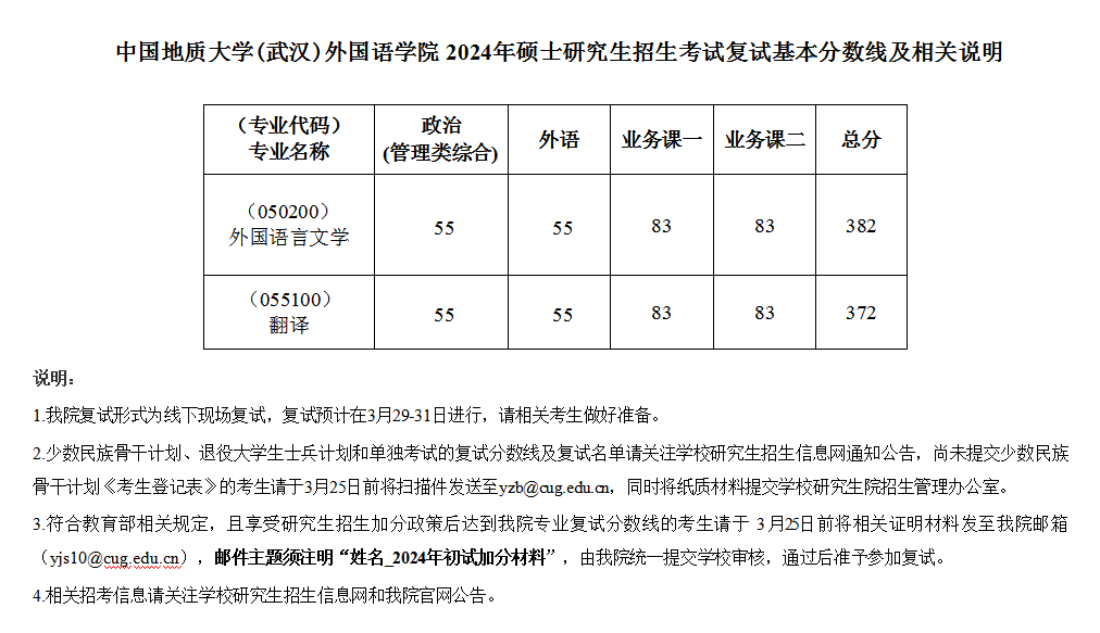 304永利集团 2024年硕士研究生招生考试复试基本分数线及相关说明